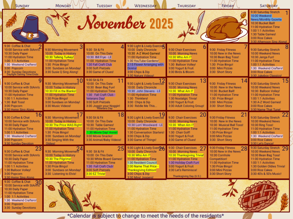 We promote socialization in all aspects of our activity programming, including various clubs, socials, and entertainment.