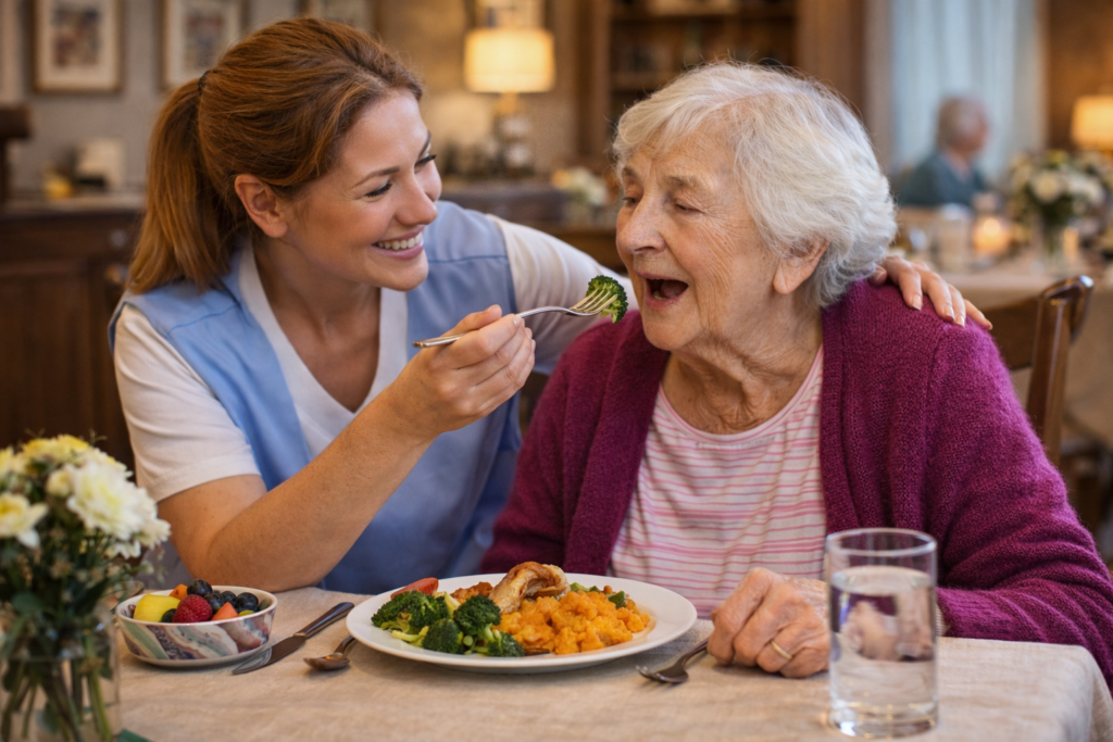 Loss of independence can lead to resistance at mealtime. Supporting autonomy, even in small ways, helps preserve dignity.